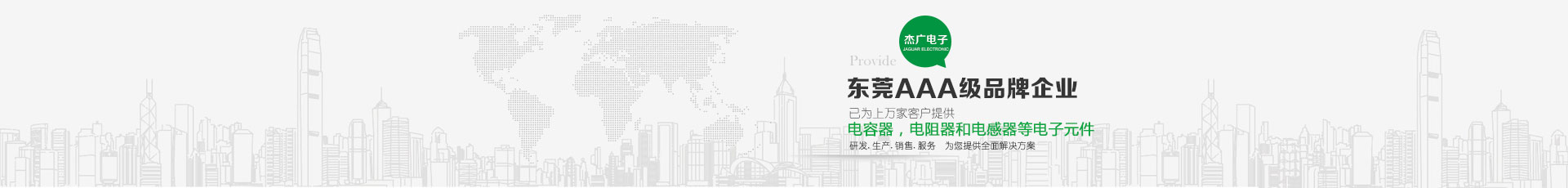 東莞市杰廣電子有限公司是一電子元件之專(zhuān)業(yè)制造廠(chǎng) ,銷(xiāo)售遍及世界各地,主要產(chǎn)品包括:電容器,電阻器和電感器等電子元件,以供應(yīng)汽車(chē),通訊,電腦,音響,影像,電動(dòng)工具,儀表,以及軍用電子等工業(yè)之電子元件使用。